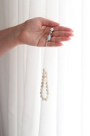 Crafted from 10mm Moonstone beads and silver-plated accents, this komboloi is both elegant and spiritual. Known for its connection to the moon and feminine energy, Moonstone inspires intuition and balance. Featuring silver and Blue Opal accent beads, (known as the head bead, is often larger or more decorative, marking the beginning of the rhythm and flow.)