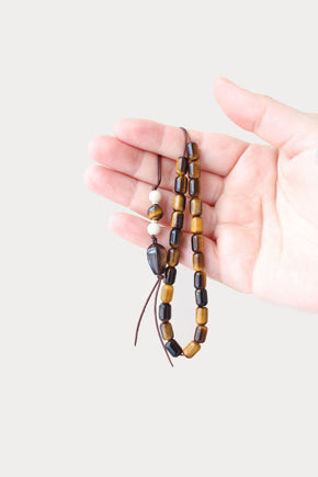 This delicate komboloi features 6mm Tiger Eye beads, perfect for those who prefer a lighter design. Its protective and empowering properties remain strong despite its smaller size. Featuring gold and Smoky Quartz accent beads, (known as the head bead, is often larger or more decorative, marking the beginning of the rhythm and flow.)